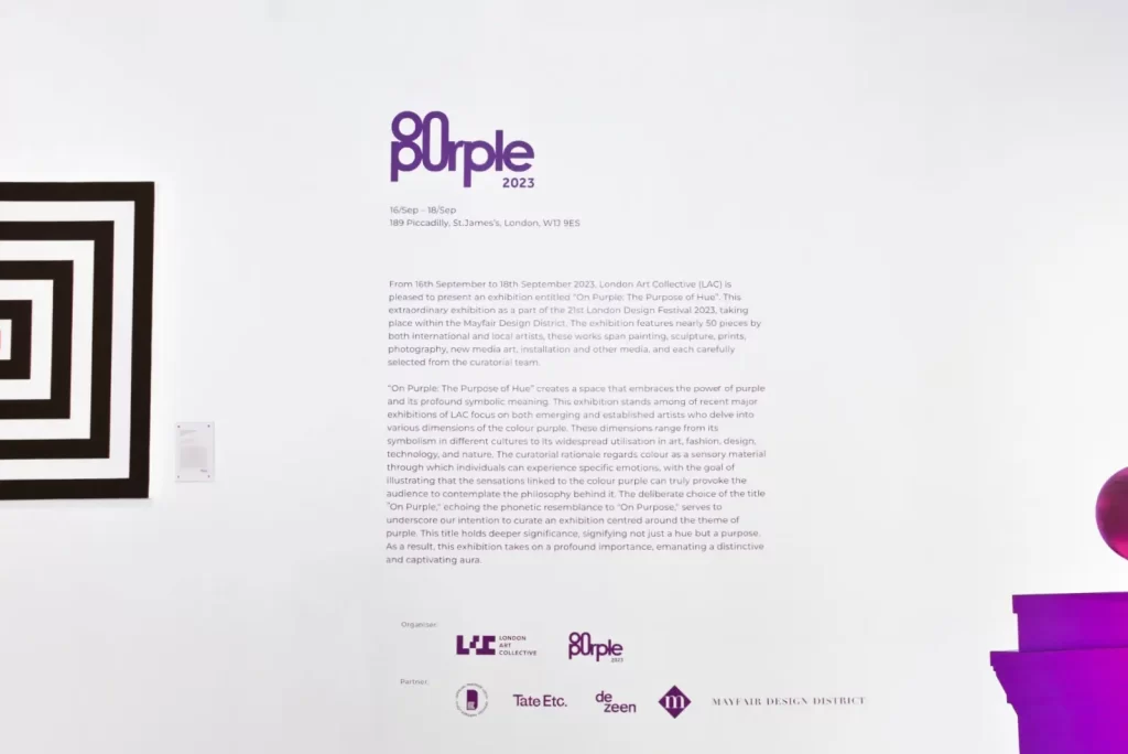 Another notable curatorial project was the exhibition On Purple: The Purpose of Hue during the 21st London Design Festival. The exhibition consisted of an immersive exhibition discussing the complexities and symbolism of the color purple. The show presented a multidisciplinary approach, combining art, design, and historical context to reveal how this enigmatic hue has influenced culture and aesthetics throughout time. Visitors were invited to experience purple’s varied connotations, from its regal and spiritual associations to its representation of creativity and introspection. Beyond her curatorial projects, Wang’s professional trajectory reflects a robust understanding of both the Asian and European art landscapes, making her well-versed in fostering cross-cultural dialogue and collaborations. Her dedication to promoting critical engagement and multidisciplinary interaction positions her as a forward-thinking figure in the art world.