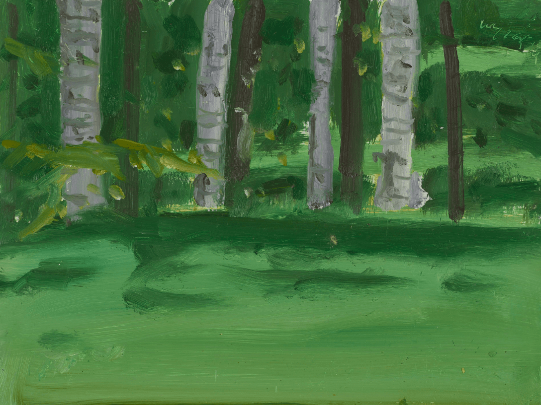 Alex Katz, born in 1927 in Brooklyn, the United States of America, is a contemporary painter living and working in New York. Katz is best known for his representational paintings depicting simplified figures on a monochrome background, or landscapes and still lives alternating flats planes of color with energetic brushstrokes.