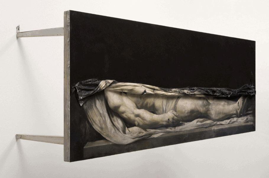 Both of the artists you mention were already selected for projects that included me: Fontana with Concetto spaziale of 1962 for my space at the 2015 Venice Biennale, and Burri with a Cretto bianco for the project Gare de l’Est at the Teatro Anatomico of Parma in 2016. My work represents a step backward with respect to the radicalism of Fontana’s holes and Burri’s combustions, works in which the authors have pushed themselves so close to the material that the sense of figuration is lost. I’m interested in displaying those “wounds” in Christ’s ribs to make it clear that between representing a wound and wounding the material, there exists an intermediate passage, which is that of wounding the image without being iconoclastic.