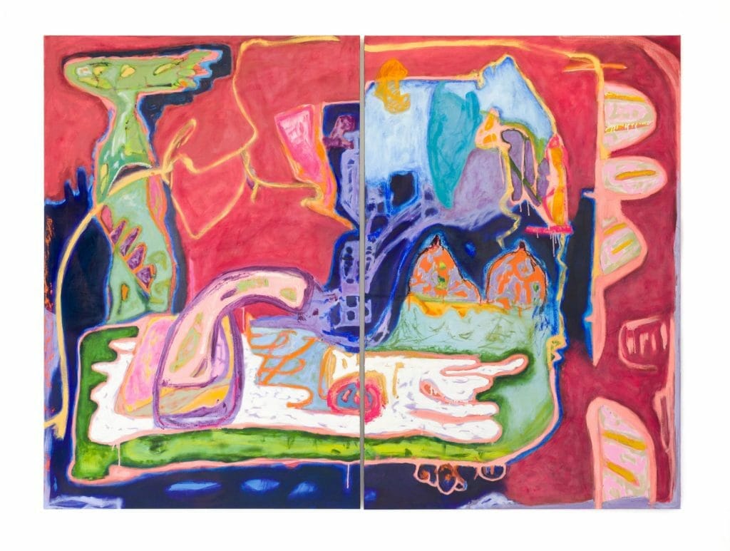 Born in 1974 in Ireland, currently residing and working in London, Sarah Dwyer’s drawing-based practice resulting in abstract paintings are marked by an exuberant color palette, intriguing marks, and an interplay of figuration and abstraction. Earlier this year, the artist showcased her latest work at Jane Lombard Gallery in New York—a series of figurative abstractions communicating stories drawn from her own life, but also Jungian archetypes and literary influences.