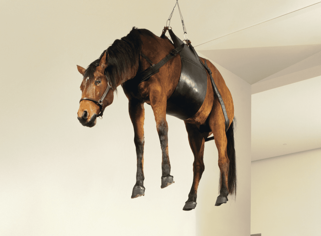 Hirst rose to fame in the 1980s and 1990s with notorious artworks pushing not only the boundaries of art and contemporary sculpture but also of good taste and what is morally acceptable in art. Whereas Berlinde De Bruyckere uses casts of wax for her equine subjects, Hirst’s animals—encompassing sharks, cows, zebra, and more—are as real as they are dead.