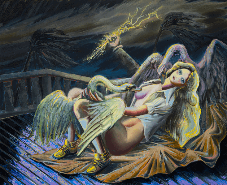Lyube Petrov, Contemporary Leda, 2021. Oil on canvas – 180 x 220. Courtesy the artist.