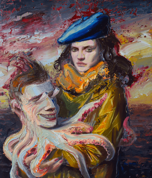 Lyube Petrov, Lovers, 2021. Oil on canvas – 70 x 60 cm. Courtesy the artist.
