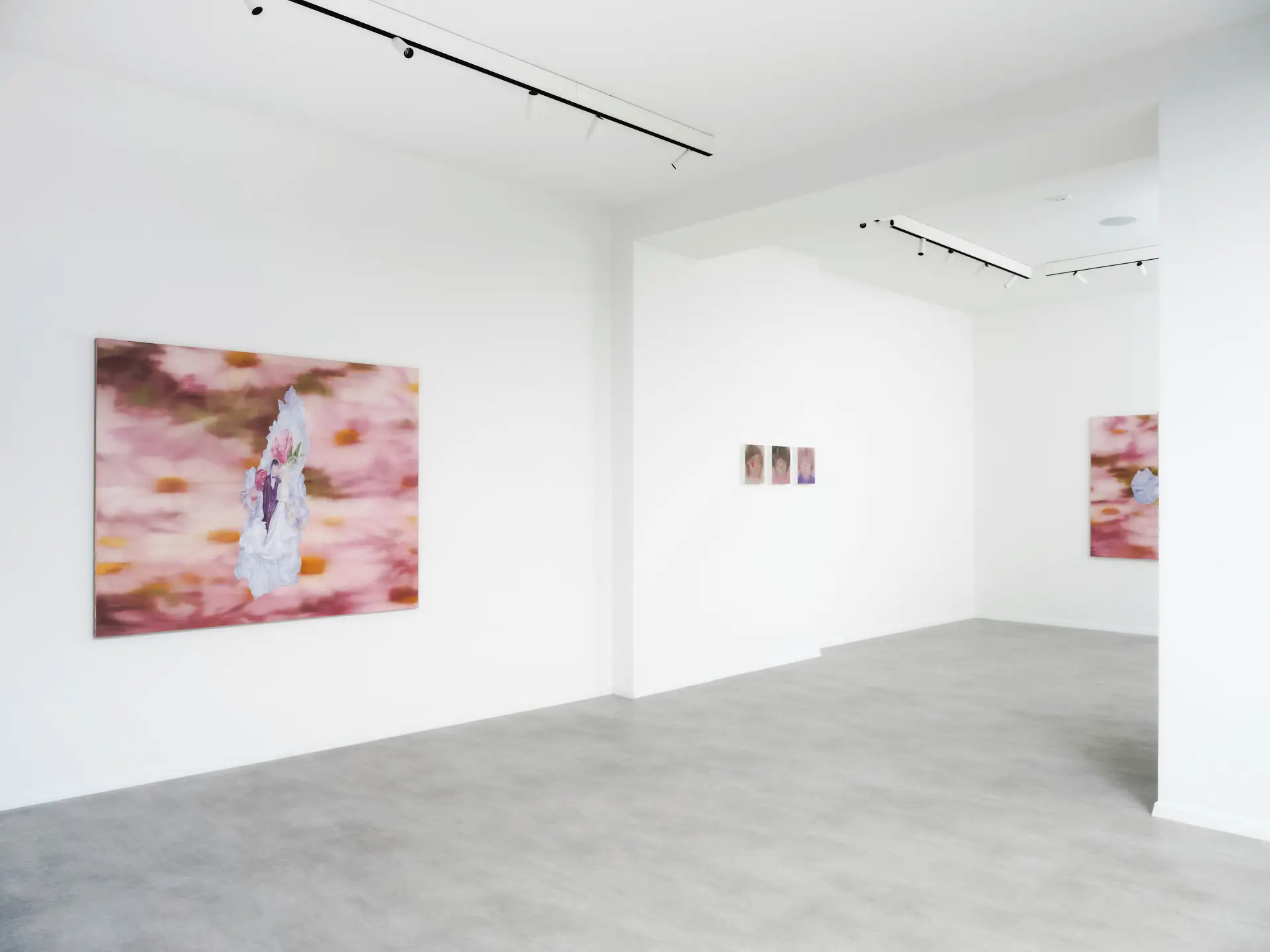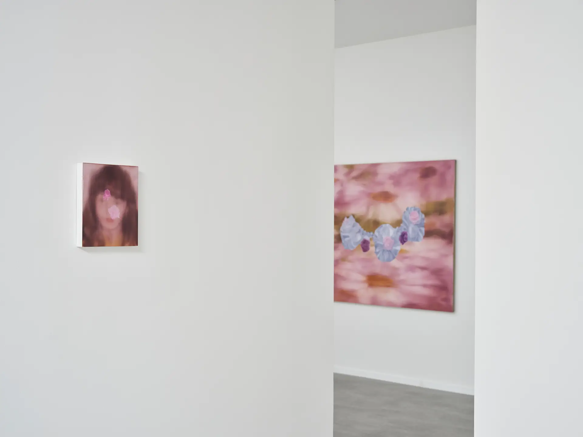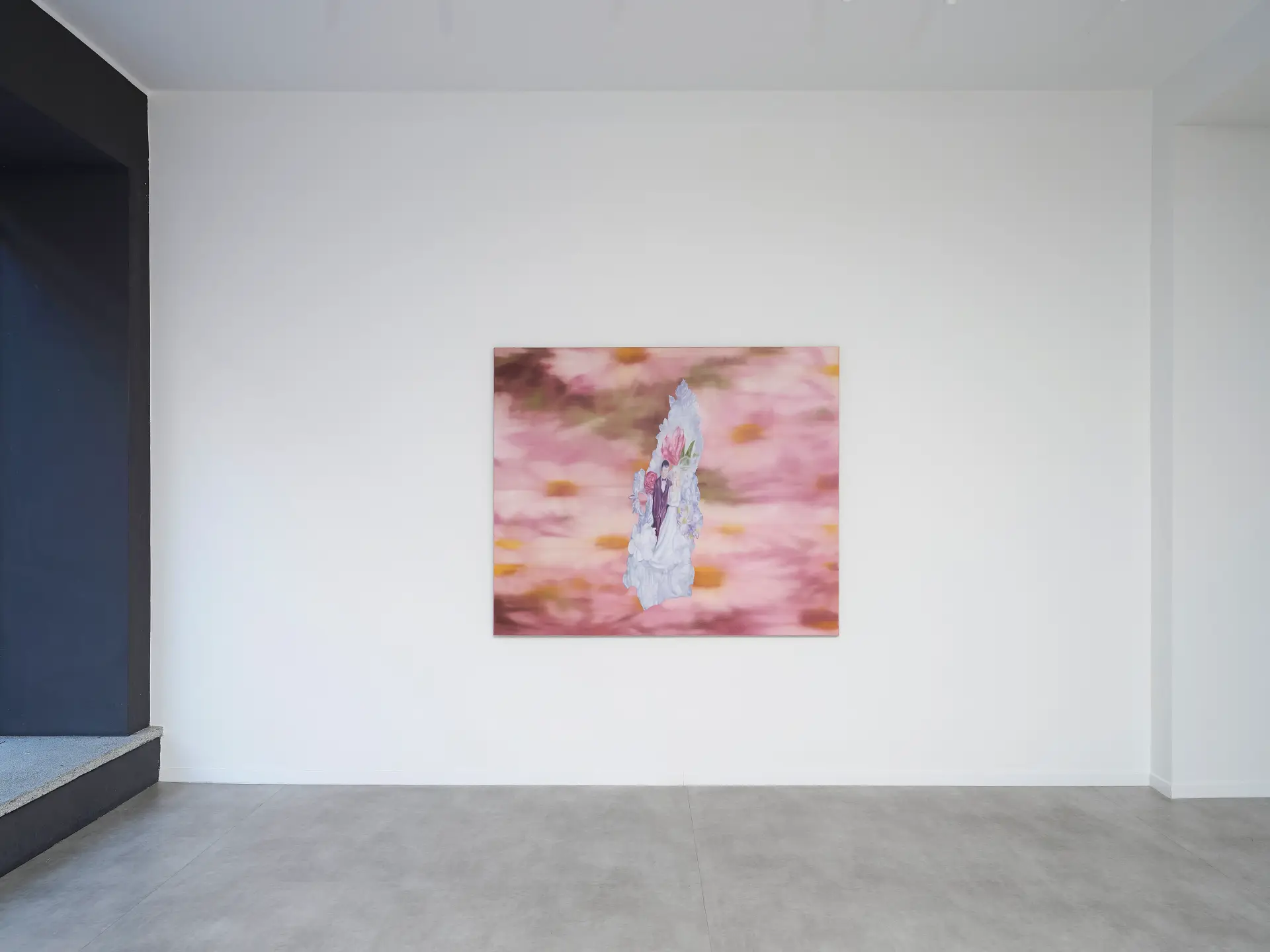 Born in Zagreb in 1982, Martina Grlić holds an MFA from the Academy of Fine Arts, Zagreb. Grlić’s paintings initially seduce with their softness: sfumato backgrounds, pastel palettes, and familiar domestic scenes that seem lifted from the mid-century imaginary. But as the title suggests, the idyll is saccharine—artificially sweet, and ultimately unsettling. A wedding dress, a child’s toy, a smiling woman: these motifs, repeated across canvases, do not reaffirm comfort but instead reveal the symbolic excesses of cultural conditioning. The artist presents memory as inherently distorted, and her paintings reflect this: they are not records, but constructions that lure the viewer with familiarity before shifting into a more unstable register.