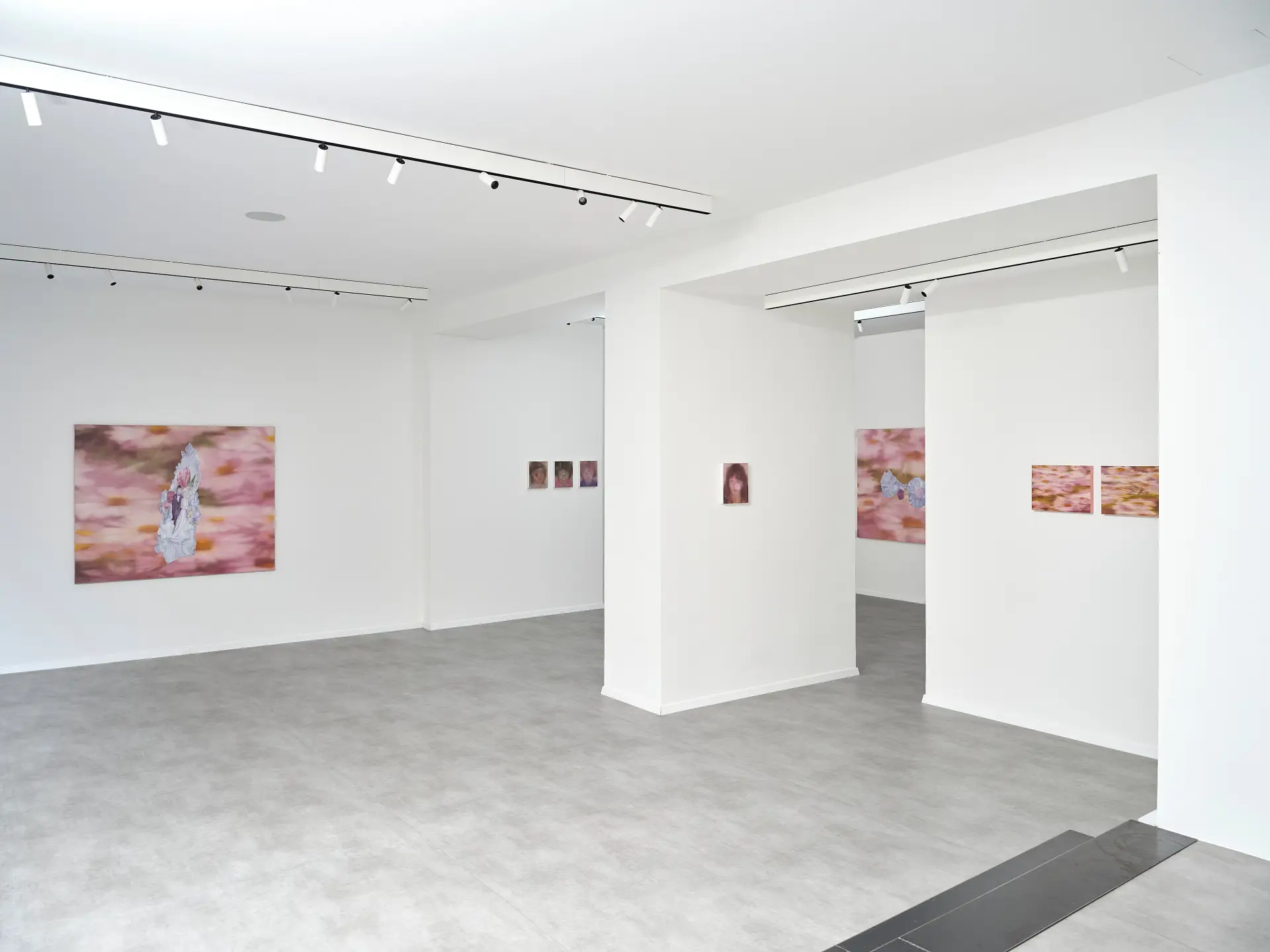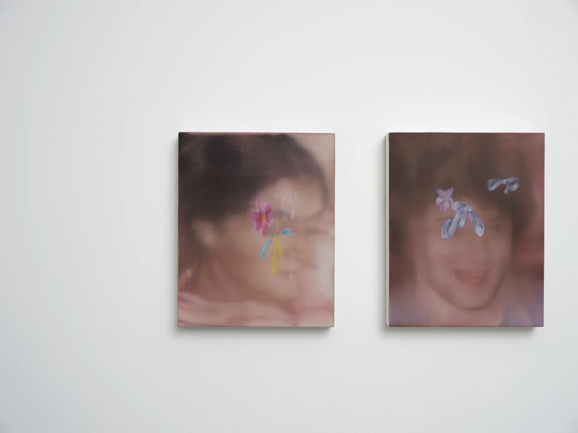 The exhibition draws its conceptual backbone from literary sources, particularly the writings of Joan Didion, who questioned the scaffolding of narrative and the illusions it creates. Like Didion’s fragmented reflections, Grlić’s work operates through slippage—between sincerity and satire, beauty and critique. The surfaces may appear polished, but they carry within them the residue of unspoken cultural rituals, emotional labor, and the erasure that often accompanies idealized femininity. By isolating and magnifying details—glittering jewellery, floating ornaments, ornamental cherubs—Grlić exposes the performative nature of happiness and the aesthetics of belonging. Her imagery, tinged with irony, critiques not only the past but the mechanisms by which we continue to reproduce it. In doing so, Saccharine Idyll challenges the viewer to look beyond the sweetness, to consider what narratives we choose to preserve, and at what cost.