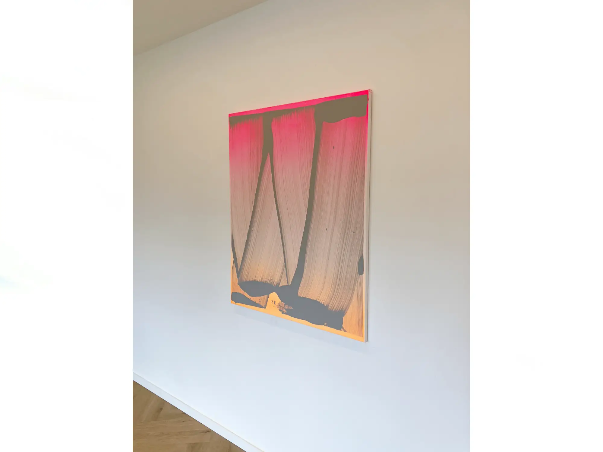 Barath is best known for his radiant abstract tableaux in which the artist explores a distinctive and personal format that allows him to set himself free, guided by the paint. His paintings can be described as blasts of color, bursting with energy, vitality, joy, and relief, never failing to have a direct impact on the artist upon finishing the artwork, and on the viewer when beholding it. An instant hit of dopamine, accelerating our pulse, filling us with ardor, as exhilaration rushes from our chest to our mind. This particular painting was created on the occasion of his solo exhibition titled Chromatic Pulse at CAI in Harelbeke, Belgium.