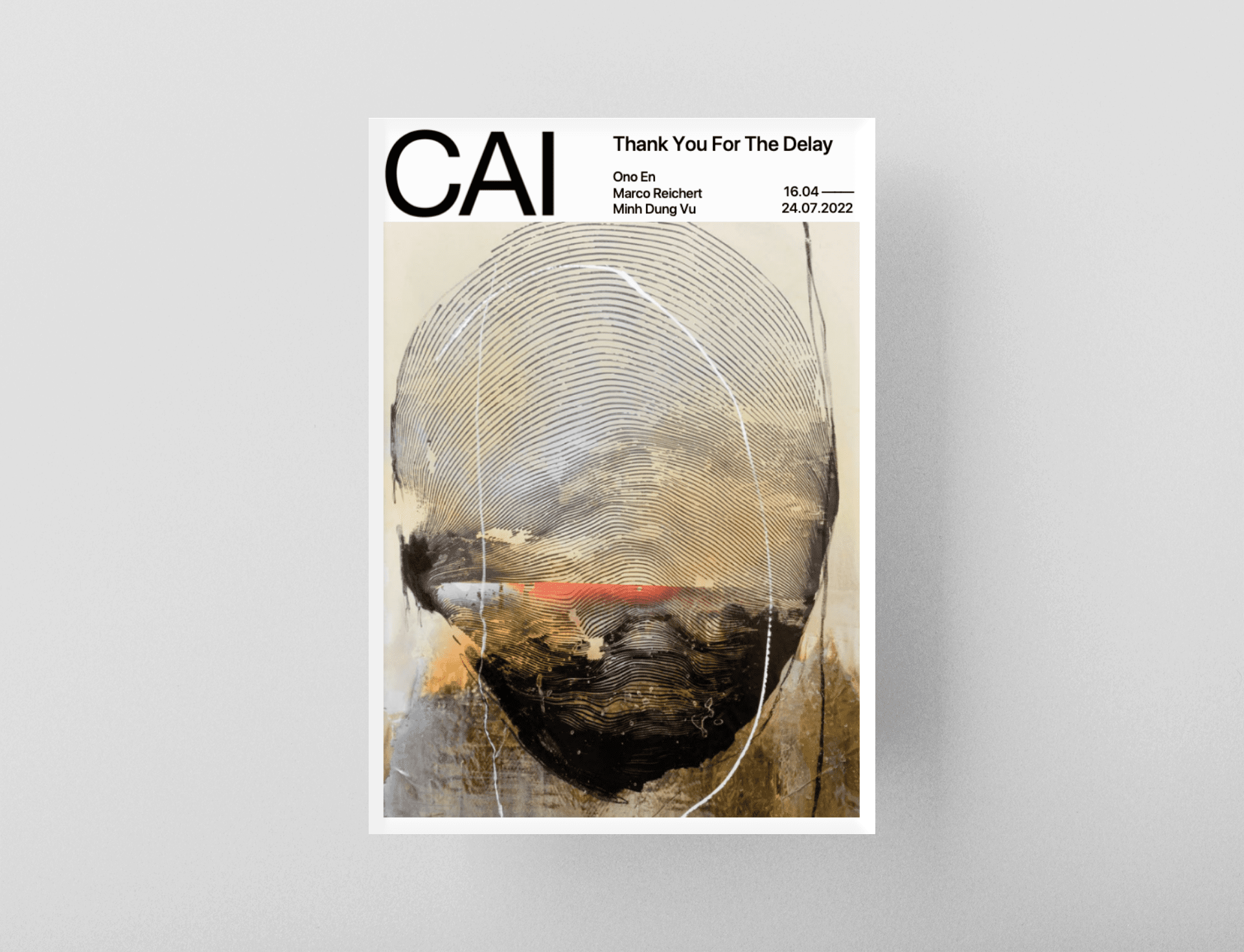 Exhibition catalogue of the group exhibition titled Thank You For The Delay showcasing the works of Ono, Marco Reichert & Minh Dung Vu. The exhibition runs from April 16 until June 24, 2022, at CAI Gallery, Harelbeke, Belgium.