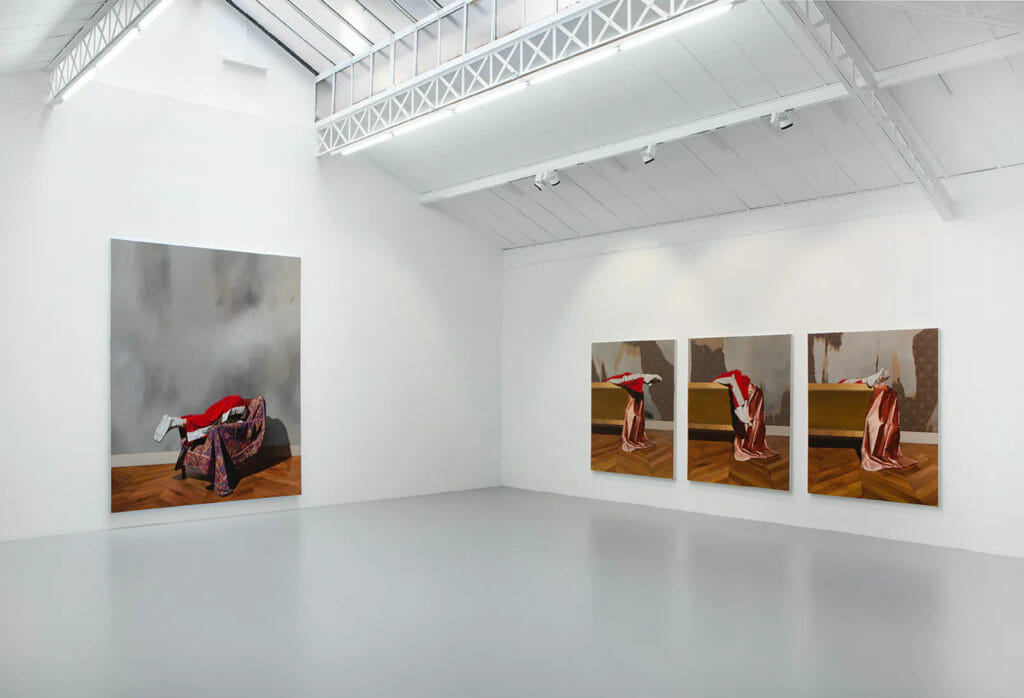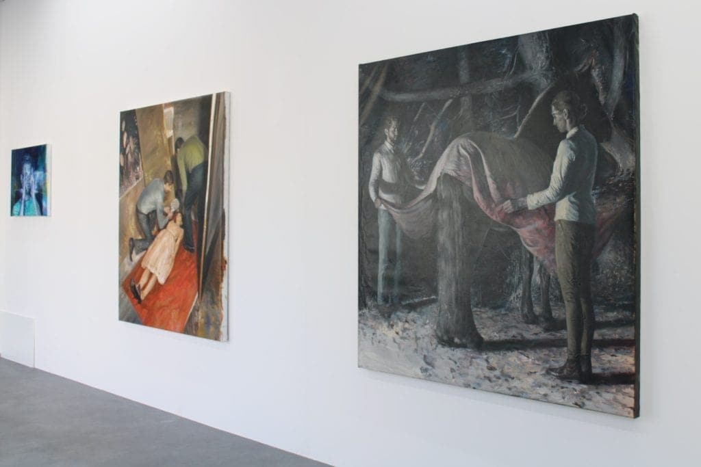 Grecu used to build his own sets and attributes in order to ‘direct’ the image he was looking for. By manner of photography, Grecu makes sketches of these scenes before painting them over a long period of time. As a result, the paintings look like moving ‘stills’ with the seductive quality of a painting. In doing so, the Romanian painter investigates themes such as magic, isolation, rites, corruption of the human mind, censorship, religion, social disease, and alienation. “As an artist, I’m not to reveal answers through my work; however, to generate questions for the spectator and make them think and wonder. I am not interested in representing ‘per se’ the subject from within my paintings, as much as I want to veil it under a certain kind of haze and a poetical whiff. After all, the subject is in the eye and mind of the viewer; the artist should deliver veiled subjects and mystery.” Today, the artist constructs these sets in his mind, increasing the spontaneity and subconscious aspect that is inherently related to his artistic practice.