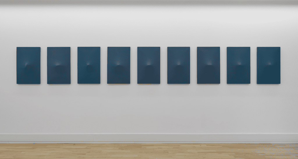 Up next, we encounter the elusive and minimal paintings by Robert Barry. Barry was born in 1936 in the Bronx, New York, and currently resides and works in Teaneck, New Jersey. The American artist is best known as a conceptual artist, internationally lauded for his dematerialized works, questioning the nature of the art object and testing the limits of materiality.