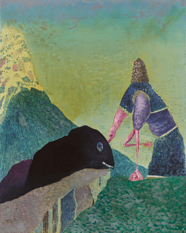 Basim Magdy creates dreamlike paintings combining familiar elements from this world while juxtaposing them with absurd elements out of this world. With bright colors and an almost science-fiction feeling, his painterly oeuvre distinguishes itself strongly with its surreal and aggressive quality.[12]