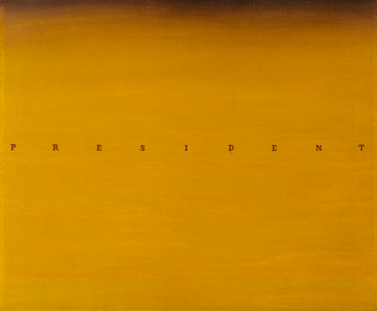 Ed Ruscha, President, 1972. Oil on canvas – 50.8 × 61 cm. Courtesy Omer Tiroche Gallery, London.