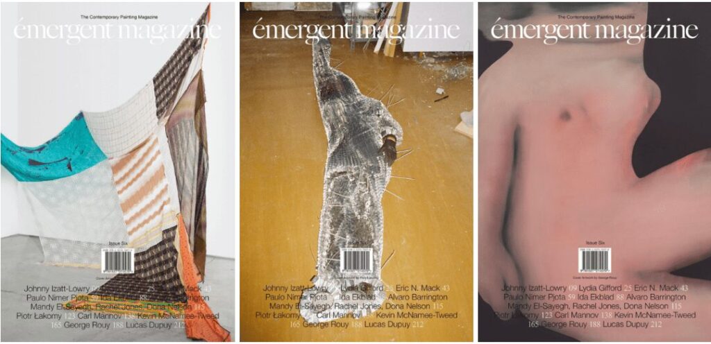 Founded and operated by artists, Émergent functions as an exhibition in print, offering readers an exclusive view of artists’ works outside the traditional gallery setting. The magazine features notable artists such as Glenn Ligon, Urs Fischer, Louise Bonnet, Paulo Nimer Pjota, Alvaro Barrington, Ida Ekblad, Eric N. Mack, Angela de la Cruz, Tom Burr, and John Bock. Available globally, Émergent can be found in prestigious institutions like MoMA PS1 in New York, Tate Modern, and Serpentine Gallery in London, as well as in top commercial galleries such as Gagosian and White Cube. You can find more information on their website here.